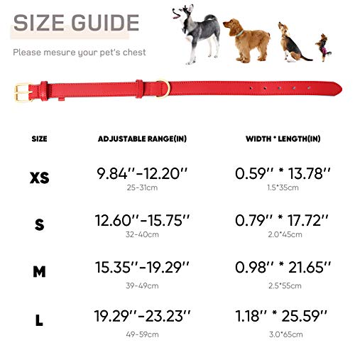 Penivo Collares de Cuero para Perros Grandes Hebilla de Metal Mascotas de Lujo Perros pequeños pequeños Collar clásico básico Ajustable (M (29cm-43cm), Rojo)