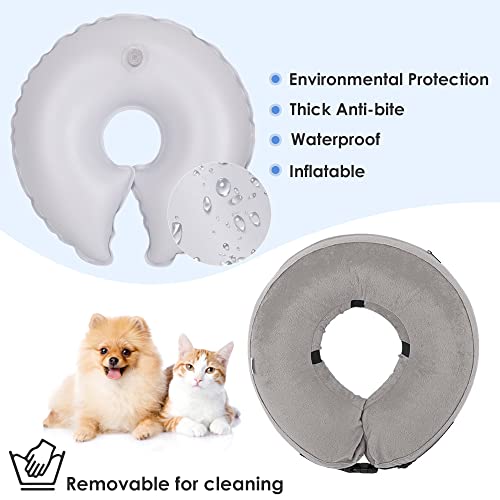 - CÓMODO E INFLABLE: mantener la comodidad de las mascotas es nuestra principal prioridad. Nuestro collar inflable está hecho de tela de franela de algodón suave y cómoda, alternativa a los conos de plástico tradicionales para perros y permite que los perros coman, beban y duerman normalmente, sin bloquear su visión; Además, la bomba incluida es un regalo de nuestro collar. En lugar de volar por la boca, el collar se puede inflar fácilmente con el uso de esta bomba en solo unos segundos.
