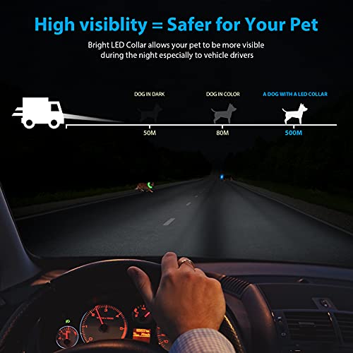 - Hacer que el perro sea más visible en la oscuridad: Una de las principales ventajas de usar un collar LED para perros es que hace que el perro sea más visible en la oscuridad. Esto es especialmente útil si el perro tiene que salir a caminar o correr en la oscuridad. Las luces del collar ayudarán a que los conductores vean al perro y, por lo tanto, evitarán que el perro sea golpeado por un vehículo.