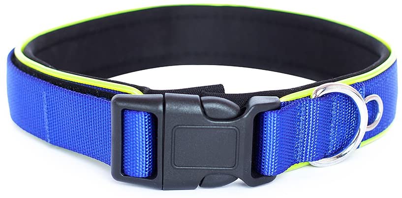 Moonpet Collar para perro de nailon acolchado y suave interior de neopreno, con velcro ajustable y reborde de plástico reflectante