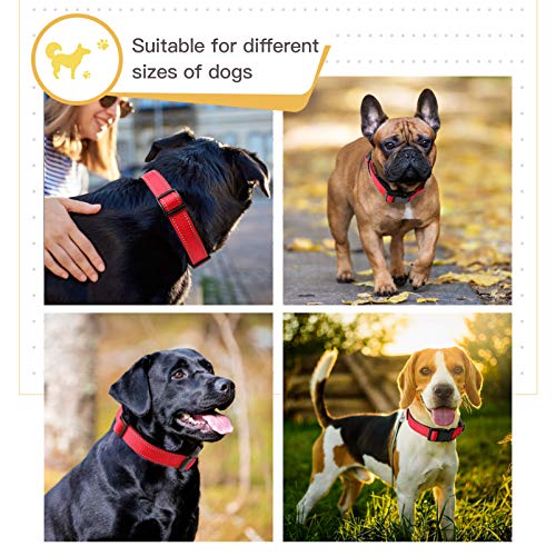 HEELE Collar Perro, Collar Nylon Reflectante Neopreno Forrado Ajustable para Perro Mediano, Rojo, M