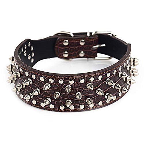Collar para perro gigante suave de piel de cocodrilo marrón con remache antimordedura para perro grande (M: 24 x 1.9 pulgadas)