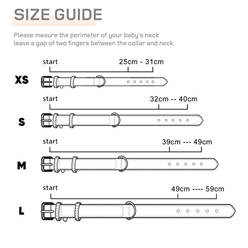XXS: Longitud del cuello: 15,5-21 cm, Ancho: 1,3 cm, Longitud total: 26 cm.