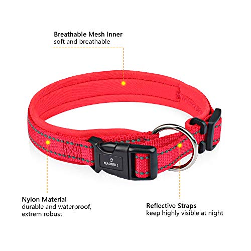 MASBRILL Collar de Perro Duradero y Reflectante, Ajustable Collar para Perros Grandes o Pequeños, Fabricado de Nylon con Suave Acolchado (Rojo XL)