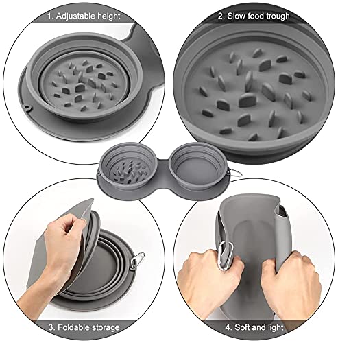 Cuenco Plegable para Perros,Cuencos Doble para Perro Gato,Comedero Lento Mascotas y Cuenco Agua,Cuencos con mosquetón,Silicona Antiderrame,para Perros Pequeños,Medianos,Gatos