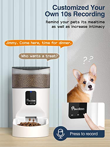 Pawaboo 7 L Alimentador Automático para Mascotas, WiFi Alimentador de Temporización Inteligente 10 Comidas al Día, Función de Grabación 10 Segundos para Gatos Perros Pequeños, Blanco y Transparente