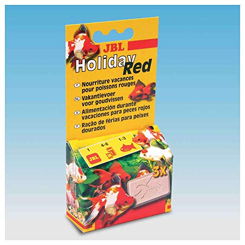 - La alimentación de vacaciones para peces rojos JBL Holiday Red garantiza la alimentación automática de los peces rojos durante tu ausencia. Este producto contiene el conjunto de componentes indispensables para una alimentación equilibrada. 1 bloque de JBL Holiday Red es suficiente para 1 - 3 peces rojos de tamaño mediano (aprox. de 8 a 12 cm) durante 4 - 6 días.