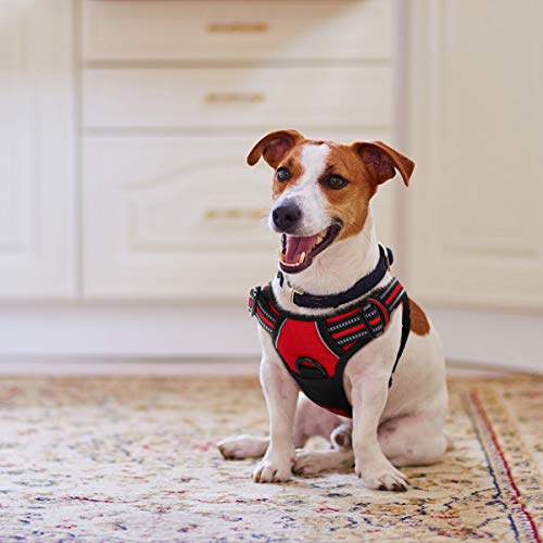 - Seguro y cómodo: tu perro disfrutará de la caminata diaria en este cómodo arnés para perro. Hecho de nailon Oxford duradero y acolchado con cojín suave para proteger la piel de tu perro. La malla de aire transpirable mantiene a tu perro fresco durante las actividades al aire libre. Las tiras reflectantes superbrillantes garantizan un paseo seguro tanto de día como de noche.