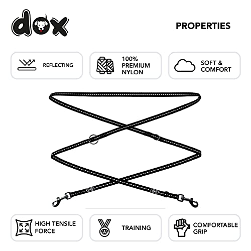 DDOXX Correa Perro Multiposición Nylon Reflectante, Ajustable en 3 tamaños, 2 m | Muchos Colores & Tamaños | para Perros Pequeño, Mediano y Grande | Correa Doble 2 Gato Cachorro | L, Negro, 2m