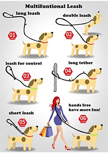 - Material de alta calidad Resistente 3 opciones de uso en una misma correa Para todo tipo de razas Con hilo reflectante