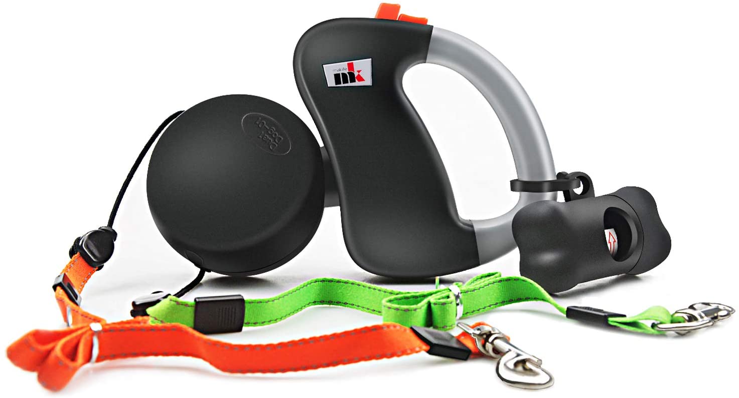 Makife Doble Correa para Perros Automático retráctil Cuerda para Perros 22,6kg Cada Perro Extensible hasta 3m 15pcs Bolsas Perros excrementos