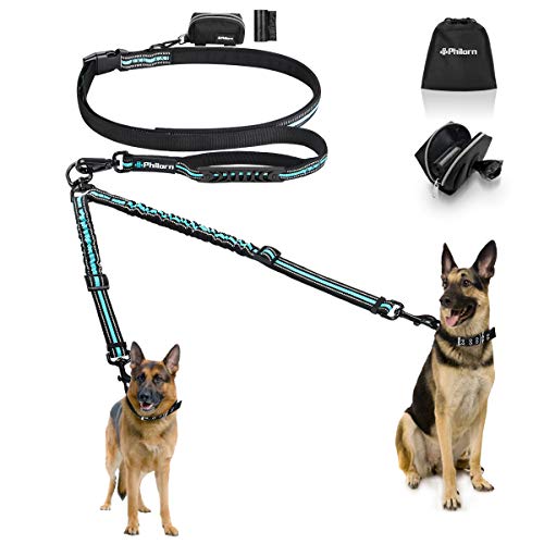 PHILORN Correa Doble para Perros Manos Libres (66-84") - Reflectante, Desmontable - Plomo Doble para Perros que Absorbe los Impactos (110lbs), Separador de Correa Doble sin Enredos, con 2 Asas y Bolsa