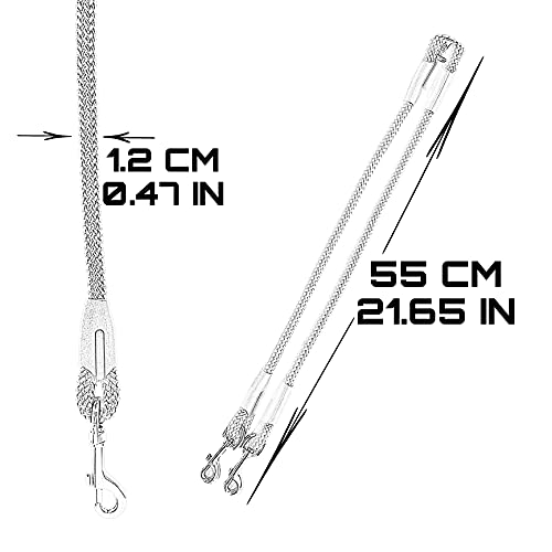 - perfecto para usar con la mayoría de las razas. Con un solo anillo en un extremo para fijar firmemente el plomo y dos ganchos de activación fuertes en el otro extremo para sujetar a sus collares de perros