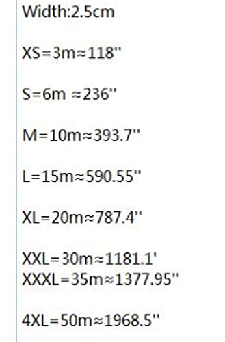 - Tamaño: Longitud Total: sobre 15m/50 pies; Anchura: aproximadamente 2,5 cm. Se puede ajustar a 7.5m / 25ft si es necesario.
