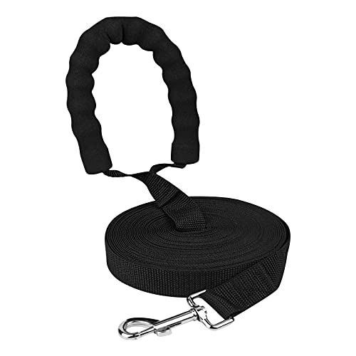 Dapzon Correa Perro, 10m Correa Adiestramiento Perro con Mango Suave Acolchado Antideslizante, Correa Larga para Perros Grandes, Medianos y Pequeños, Camping, Entrenamiento Recall, Negro