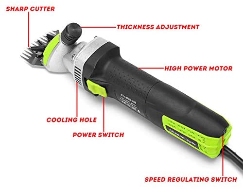 - Alta potencia de 690 W: potente esquiladora para ovejas, adecuada para diversos animales con diferentes tipos de lana. La hoja de corte está hecha de materiales resistentes, lo que te permite trabajar durante muchos años sin perder el afilado. Además, los animales no resultarán heridos durante el corte.