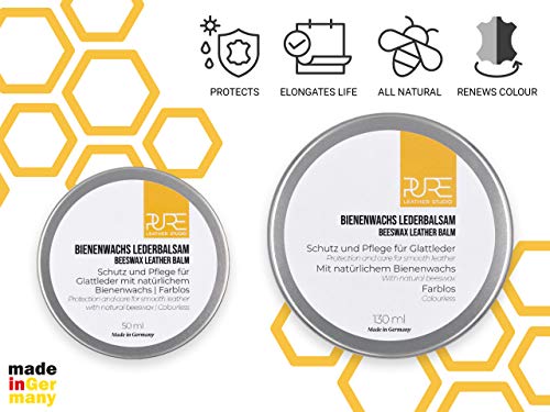PURE Leather Studio Crema incolora para Cuidado de Piel y Cuero 130ml Cera de Abeja Natural I Bálsamo reparador I Impregna y Protege - Made in Germany