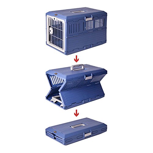 Iris Ohyama, Porta Mascotas/Caja de Transporte Plegable, 2 Aberturas (Delantera y Trasera), asa, Bien ventilada, para Gato & Perro MAX 20 kg - Pet Carry FC-670 - Azul