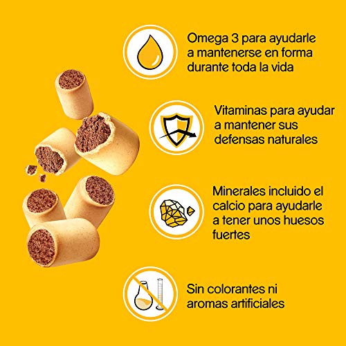 Dentastix es una marca de alimentos para perros creada por Pedigree. Los Dentastix se venden en forma de palitos largos y están hechos de una mezcla de cereales, gelatina y goma. Los Dentastix se ofrecen en diferentes tamaños para perros de diferentes tamaños. Los Dentastix se han diseñado para que ayuden a limpiar los dientes de los perros y reducir el mal aliento. Los perros mastican los palitos, lo que ayuda a eliminar la placa y el sarro de los dientes. Dentastix no reemplaza la necesidad de un cepillado regular de dientes, pero puede ayudar a reducir la acumulación de placa y sarro. Los Dentastix están disponibles en muchos sabores, incluyendo pollo, res, cordero, bisonte y venado. También se ofrecen en un sabor aperitivo para perros. Los perros generalmente encuentran que estos palitos son muy sabrosos y mastican voluntariamente los palitos. Dentastix es una buena opción para los propietarios de perros que buscan una manera de ayudar a mantener los dientes de sus perros limpios y saludables.