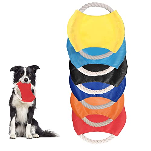 - [Material de seguridad] -- El perro frisby está hecho de cuerda de algodón natural y tela Oxford, teñido con plantas, no tóxico, suave, duradero y no dañará los dientes del perro.