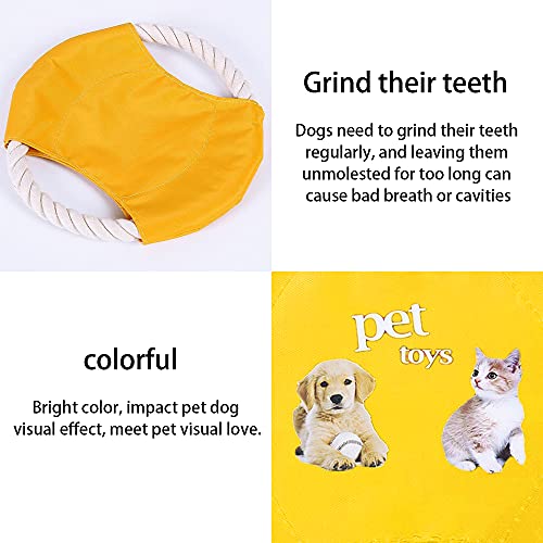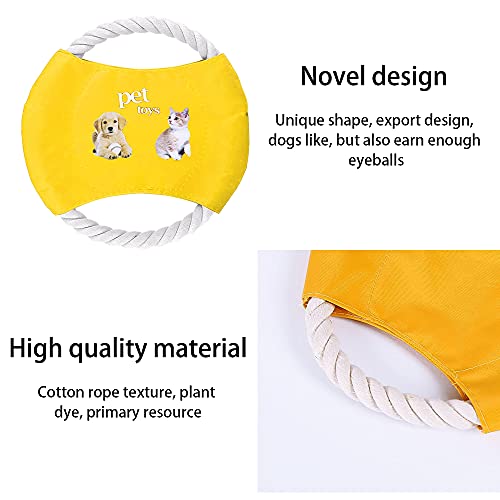Yyshyi Frisbee Perro, 2 Piezas Cuerda de Algodón Freesbee Perros, Divertido Juguete para Perros Frisbee con Patrón de Perro y Gato para Adiestramiento y Juego, 18cm de Diámetro, Amarillo