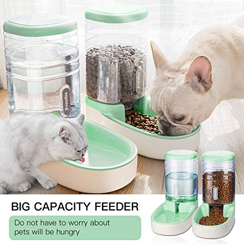 UniqueFit Pets Gatos Perros Riego automático y alimentador de Alimentos 3.8 L con 1 * dispensador de Agua y 1 * alimentador automático para Mascotas (Verde)