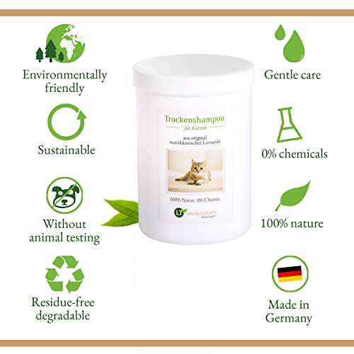 Champú seco para gatos, con polvo de arcilla original marroquí | Vegano y bio | para el cuidado del pelo sin productos químicos | 1 kg