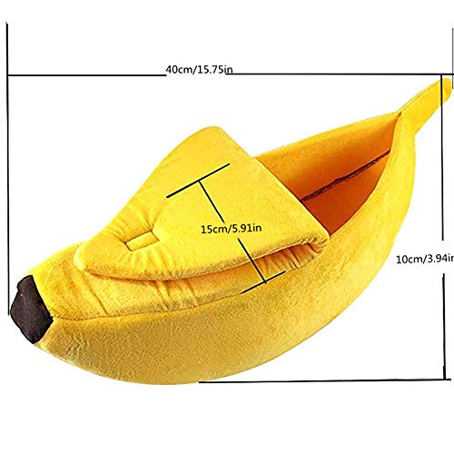 - Semiabierto con diseño de tapa: la cáscara de plátano se puede abrir y cerrar para crear espacio privado para tus mascotas. Felpa suave con esponja elástica, súper suave al tacto y al dormir. Crea una sensación de seguridad y un lugar de sueño profundo para acurrucarse y anidar de tu mascota.