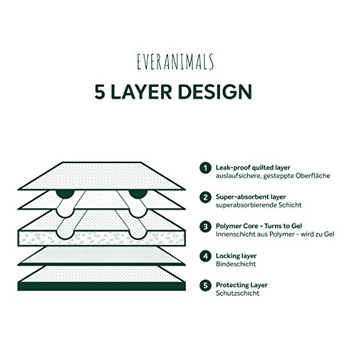 - Absorben el olor, la súper absorbente 5 capa mantiene la capa superficial seca para eliminar las impresiones de la pata húmeda en sus pisos así que permanecen la orina. Está hecho de pasta de celulosa de alta densidad y partículas de polímero super-absorbentes, tiene una buena absorción, convierte líquidos en contacto y mantiene el pelo limpio y seco