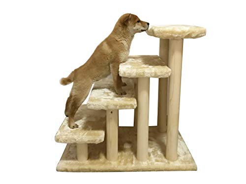 HAIBEIR Escalera de Madera para Mascotas, Escalera de 4 Pasos, escaleras para Perros y Gatos con Alfombra Desmontable para Cama Alta y sofá