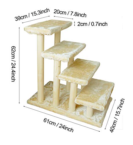 HAIBEIR Escaleras de Madera para Mascotas, escaleras de 4 Pasos, para Mascotas, Gato, Perro, con Alfombra Desmontable para Cama Alta y sofá