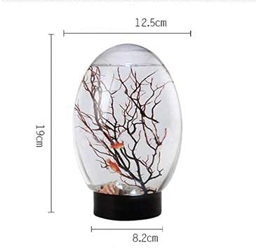 Cakunmik Mini Tanque de Peces ecológicos con Base LED, Ecosfera Cerrada Ecosistema acuático Escritorio de Pescado de Escritorio Diseño Elegante, sin Necesidad de Cambiar el Agua,Azul