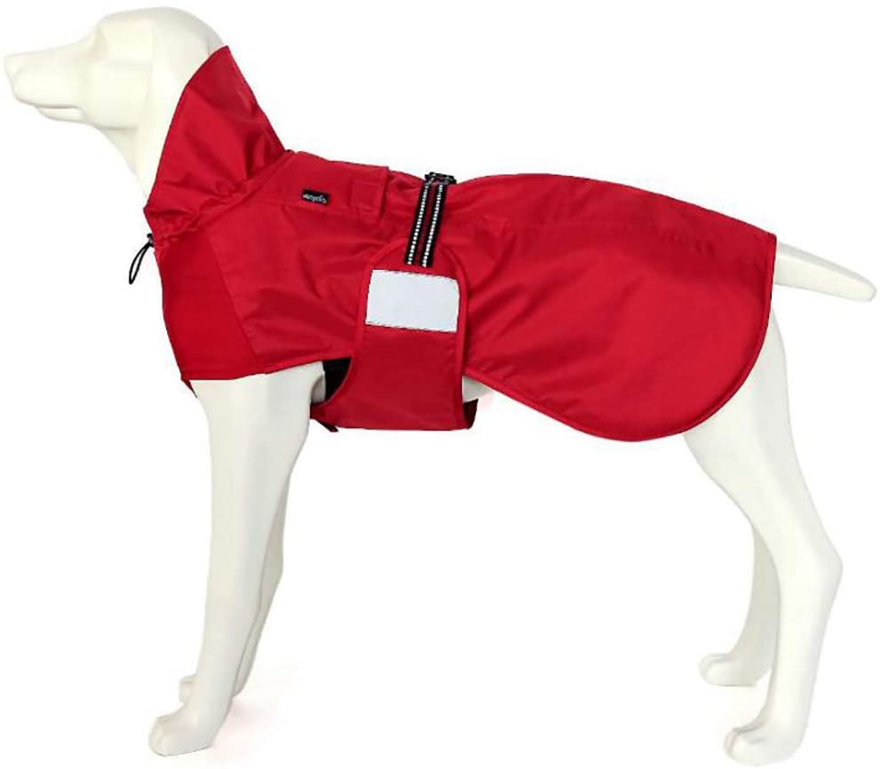 - 3. Arnés y ajustable amigable: contiene una pequeña apertura en la parte superior de la chaqueta de lluvia para usuarios de arnés. Hecho ajustable para adaptarse a cualquier raza de perro.