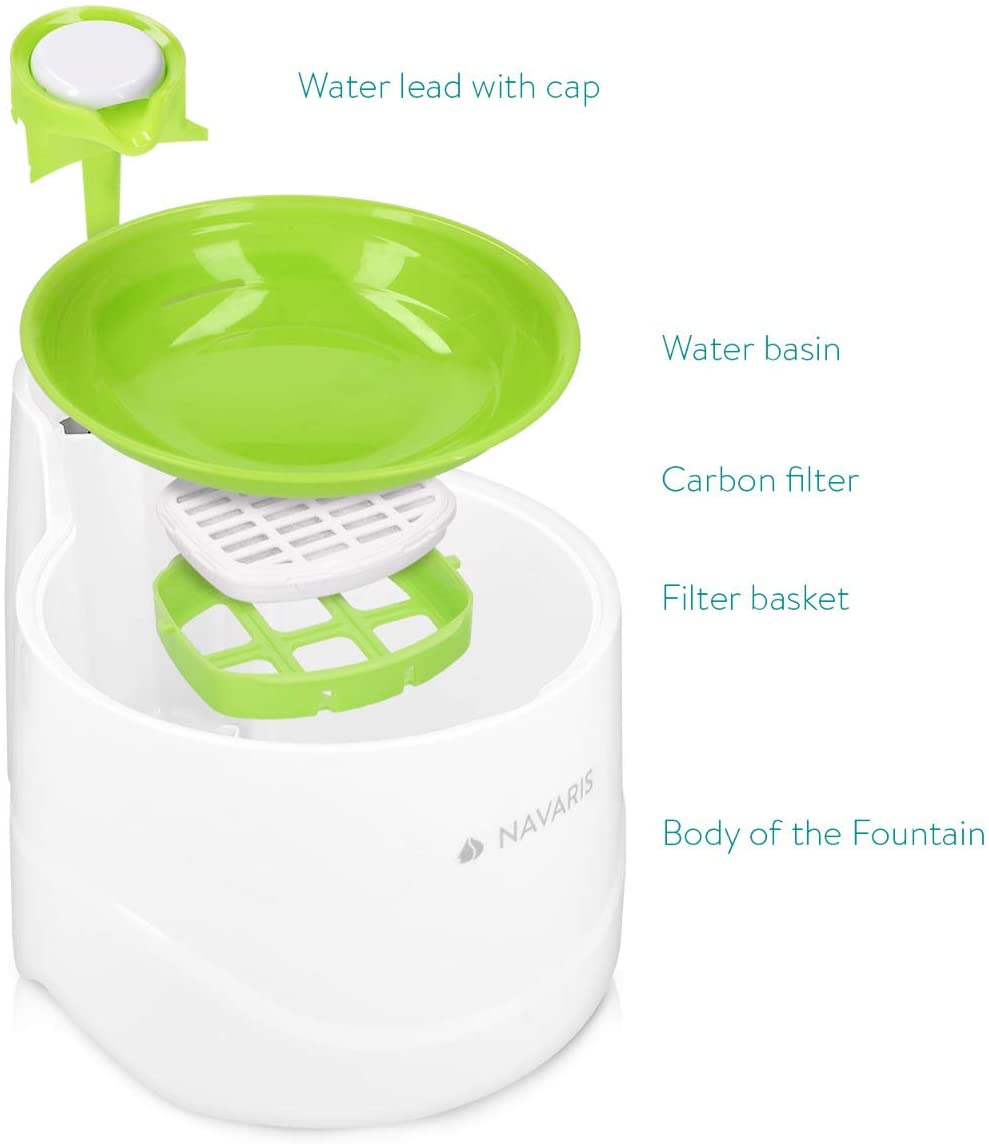 - AGUA FRESCA Y LIMPIA: Con la cascada de agua Navaris, le podrás dar agua fresca y filtrada a tu gato o perro. Gracias a la función de burbujas del bebedero también animarás a tu mascota a beber más a menudo.