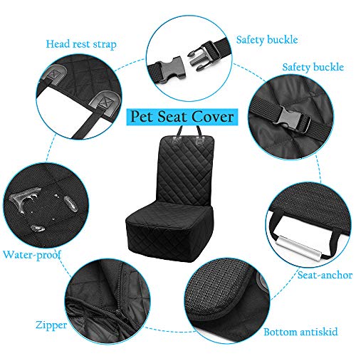 - [DISEÑO ANTIDESLIZANTE & RESISTENTE A ARAÑAZOS] Fabricado con poliéster resistente al agua resistente, la funda del asiento para perros es suficiente para proteger las uñas y las patas húmedas del perro. 4 diseños antideslizantes garantizan la seguridad de su mascota. superficie oxford texturizada, respaldo de PVC y anclajes de asiento.