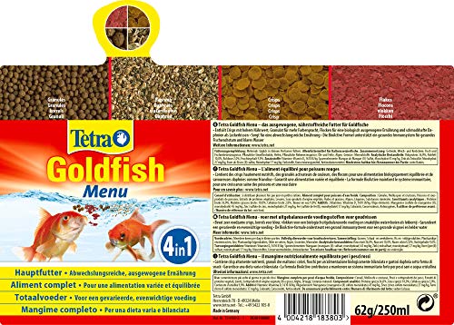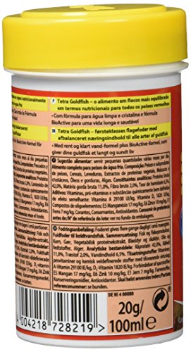 - ➰Colores brillantes➰ Tetra Goldfish es una fórmula enriquecida con carotenoides para reavivar y aportar luminosidad a los colores naturales de los peces rojos. Los peces no sintetizan de forma natural los pigmentos amarillos y rojos, por lo que deben asimilarlos a través de los carotenos presentes en los alimentos.