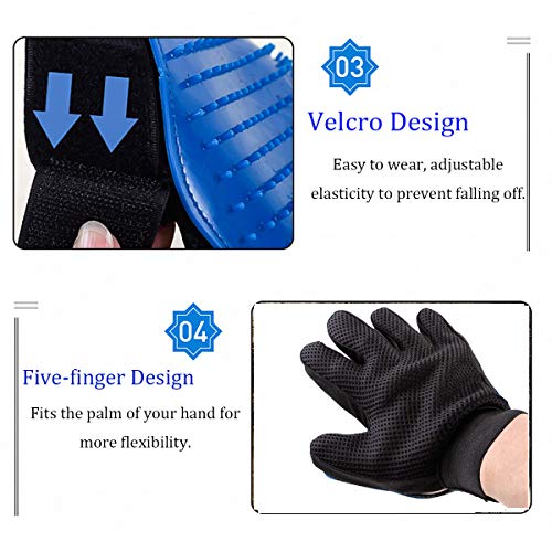 - Operación flexible - ergonómico cepillo diseño Guante de aseo para mascotas asegura sin esfuerzo, el equilibrio y el masaje para sus animales domésticos; La almohadilla de silicona ayuda a la celebración de la piel de suelta para que pueda sacar limpiamente el pelo suelto. manoplas cepillos con diseño lavable se colocan con el uso constante.