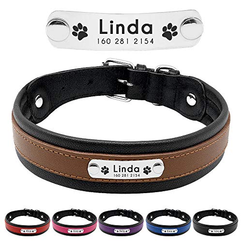 MMWW nalizado Collar de Etiqueta de identificación Grabado Personalizado para Perro Mediano Grande Pitbull Bulldog Bull Terrier Pastor alemán-Brown_XL