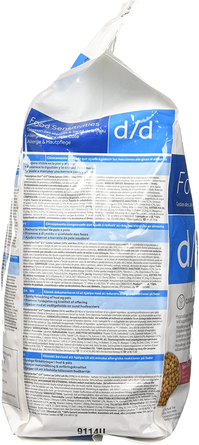 Salmón y arroz de Hill 's Prescription Diet d/d Canine 12 kg