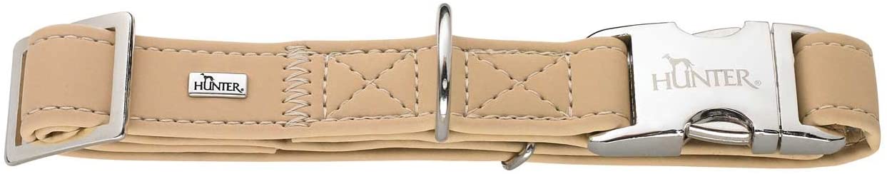 - Collar ajustable de nylon de la marca alemana Hunter. Muy resistente y con hebilla metálica de cierre a presión elaborada en aluminio de alta resistencia y muy ligera. Colores disponibles: Gris, negro, morado y beige.