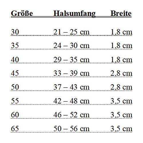 - PARA PERROS PEQUEÑOS Y GRANDES, un ajuste perfecto para cuellos de diámetros de 30-40 cm, 40-50 cm, 50-60 cm (según el tamaño S, M, L). Ancho: 2,5 cm.