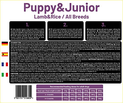 Alimento seco para cachorros y animales jóvenes con cordero y arroz de todas las especies, fórmula delicada, 14 kg