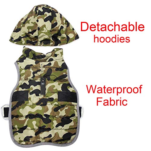 JoyDaog Sudadera con capucha para perros medianos y cálidos para cachorros de invierno frío impermeable abrigos para perros con capucha, camuflaje verde M