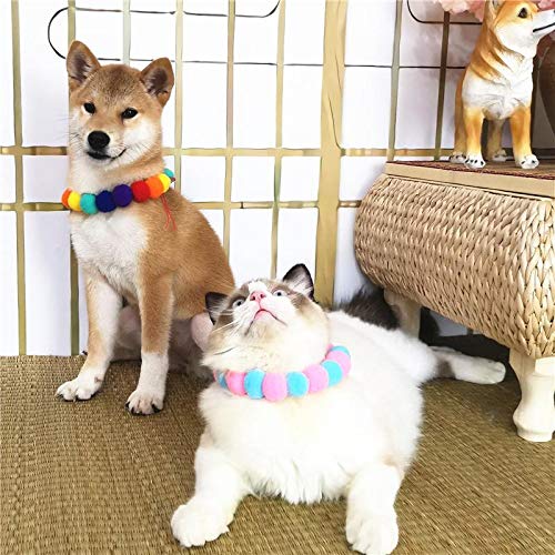 Lucheng 1 collar para mascotas, arco iris, color Shiba Inu Corgi, Teddy, gato y perro, bola de pelo, collar de joyas, S (circunferencia del cuello 35 cm), color morado claro.