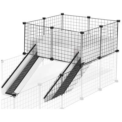 - Jaula de tamaño: Base inferior 2x6 paneles + Loft Superior 2x2 paneles + 2 Escaleras