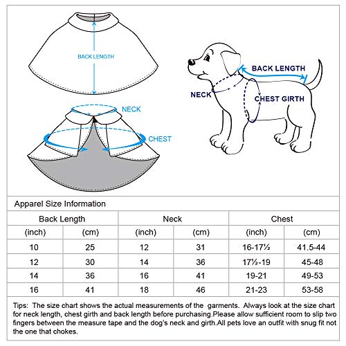 - XL: Longitud de la espalda 13.39 ", circunferencia del pecho 18.90", cuello 13.78 "; Mida a su perro desde la base del cuello hasta la base de la cola para medir la longitud de la espalda.