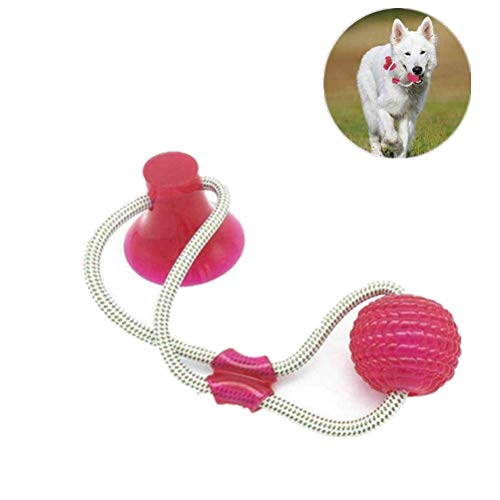 - ❥-Mantenga a su perro entretenido durante horas con esta peculiar cuerda para tirar con ventosa. Cuando la pelota se arroja al suelo, rebotará alto, lo que motivará el instinto de caza de mascotas.