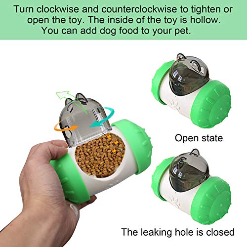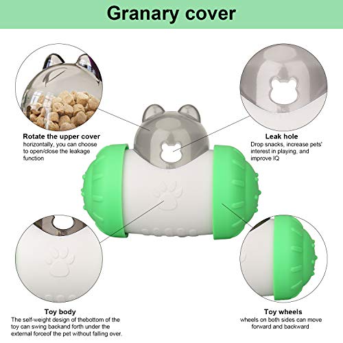 - 【Juguete Dispensador de Golosinas para Mascotas】 juguete dispensador de alimentos que adopta un diseño de equilibrio de peso propio de vaso. Puede abrir la tapa del juguete y agregar comida para perros. La mascota empuja el juguete y el juguete se balancea y la comida gotea y rueda al suelo, lo que aumenta la diversión de los juguetes. Retrasar la alimentación de las mascotas también puede proteger su salud gastrointestinal.