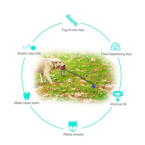 - Constructor muscular: a los perros les encanta la acción de tiro, balanceo y tirones que proporciona el poste de resorte. Como solución hemos diseñado nuestro juguete elástico interactivo que le da a tu amigo canino innumerables horas de diversión y lo mantiene seguro. El cachorro mediano y grande puede jugar al tirón de la guerra con la fuerza de la capa exterior, y cuando se suelta, el juguete de bola se lanza para que persigan hacia abajo como un juego de buscar.