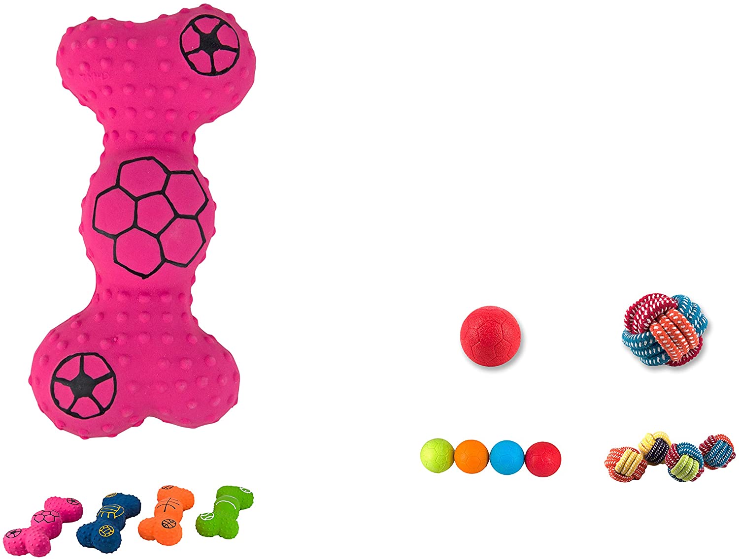 AVANZONA Juguetes Hueso Latex Sonido Divertido Interactivo para Perros con un Regalo de Pelota Caucho de 6cm Sonido y Otro Regalo de Pelota Nudo de 8 cm Enviados Formas y Colores aleatorios.